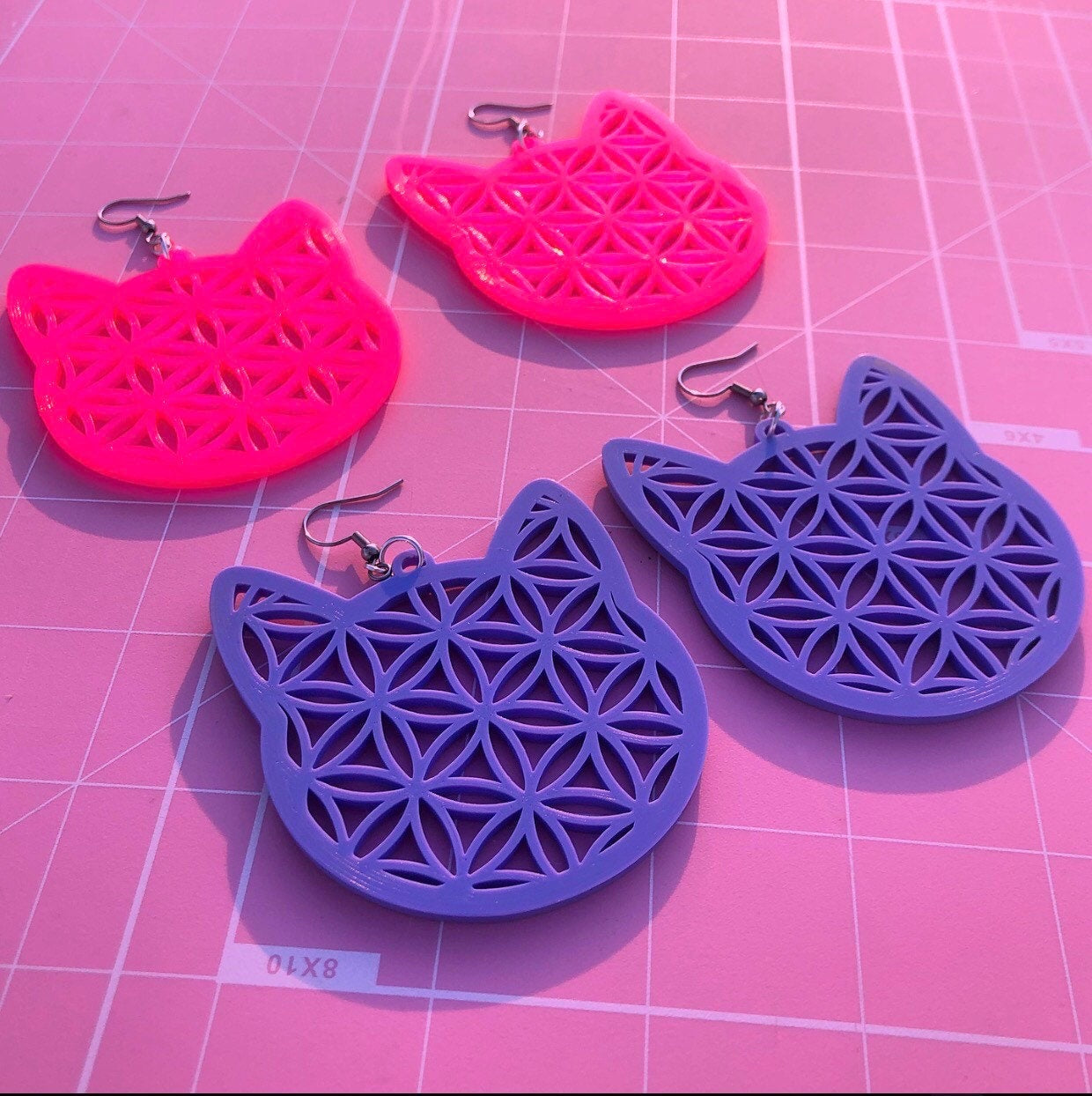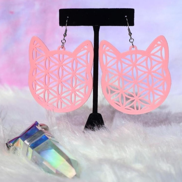 Large Kitty Flower of Life Earrings Choose Your Color